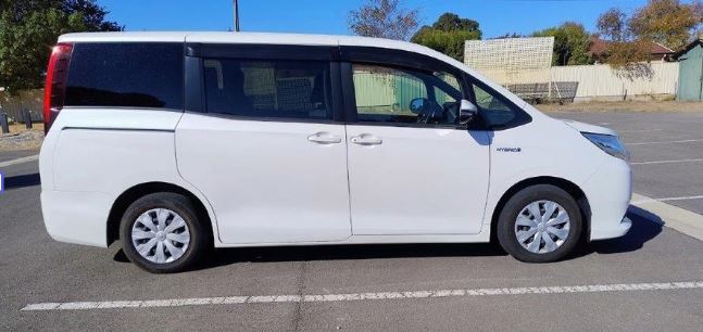 The Toyota Noah delivers smooth Hybrid performance, has 2 side sliding doors and spacious seating for 6 passenegers.
